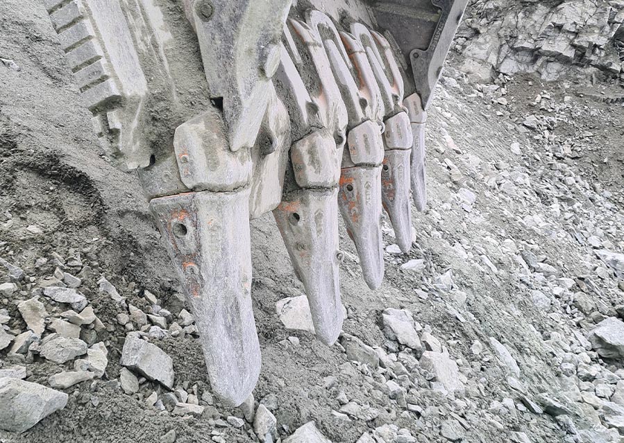 Vi satte opp forslag på 90mm kniv halv spiss, 5 stk C-Rex R-70 tenner, skrudde frontbeskyttere 2x rette+ 1x høyre + 1x venstre. 3 stk Hestesko i Chrom karbid for best beskyttelse bak tannholdere.