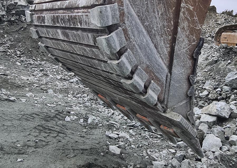 Det er lagt på Chrom karbid klosser på utsiden av skuffekniv for å prøve å forlenge levetiden på denne.