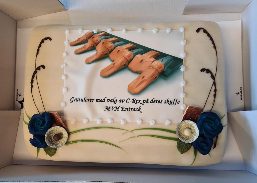 Vi tok også og hedret kunden vår Franzefoss Pukk Avd Vassfjell i Tronheim med en kake som takk for valget og tilliten.