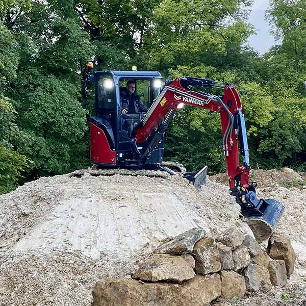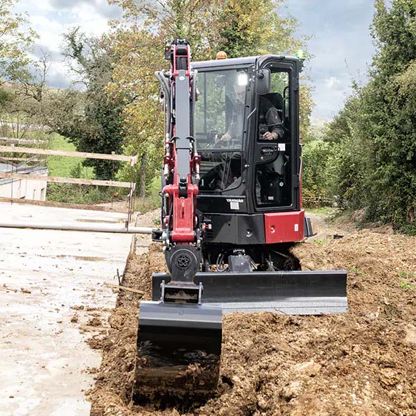 ViO38-7 minigraver er designet med føreren i sentrum for å sikre uovertruffen brukervennlighet og produktivitet. Den romslige førerhytten gir økt benplass og en ergonomisk utforming, noe som sikrer at betjeningselementer og brytere er innen rekkevidde, noe som forbedrer både bekvemmelighet og sikkerhet for føreren. ViO38-7 har en helt ny 4,3-tommers fargeskjerm, inkludert innstillinger for tilleggskretser for opptil fem redskaper, noe som gir enkel og intuitiv kontroll. Det praktiske joystick- og knappeområdet, som inkluderer en høyhastighetsbryter for kjørefunksjon, er designet for enkel bruk og forbedret driftseffektivitet. Mer ergonomiske kjørepedaler forbedrer ytterligere enkelheten ved manøvrering av maskinen.
