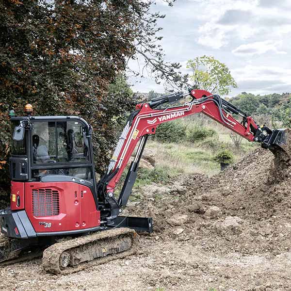 ViO38-7 minigraver skiller seg ut med Yanmars innovative ViO-design, som sikrer at verken motvekten eller den fremre delen av den øvre rammen stikker utover sporvidden. Dette resulterer i en usedvanlig liten svingradius, noe som gjør den ideell for trange rom. Den forbedrede bomsvingen forbedrer både allsidigheten og kompaktheten, noe som gir et bedre arbeidsområde. Denne unike designfilosofien maksimerer manøvrerbarheten uten at det går på bekostning av stabiliteten, noe som sikrer overlegen ytelse på trange steder.