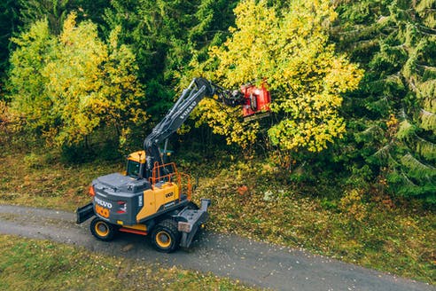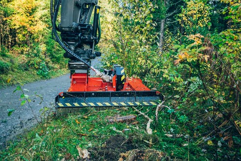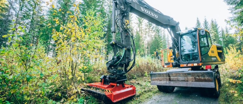 Krattknuseren monteres på en gravemaskinarm eller kantklippearm.