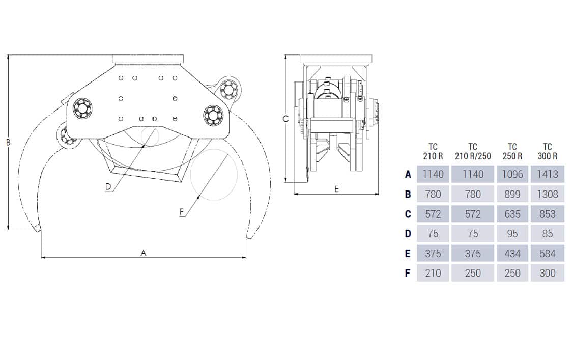 Intertmercato TC R klippegriper er mekanisk overdimensjonert i sin konstruksjon, og håndterer derfor store belastninger. Den smidige knivens skjærevinkel er nøye utarbeidet.