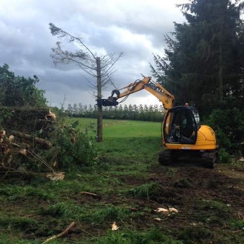 “TG250E på en 8 tonns gravemaskin – klipper hele trær helt ned til stammen ved roten. Jeg målte en stamme på ca. 35–39 cm i diameter – Not bad …”