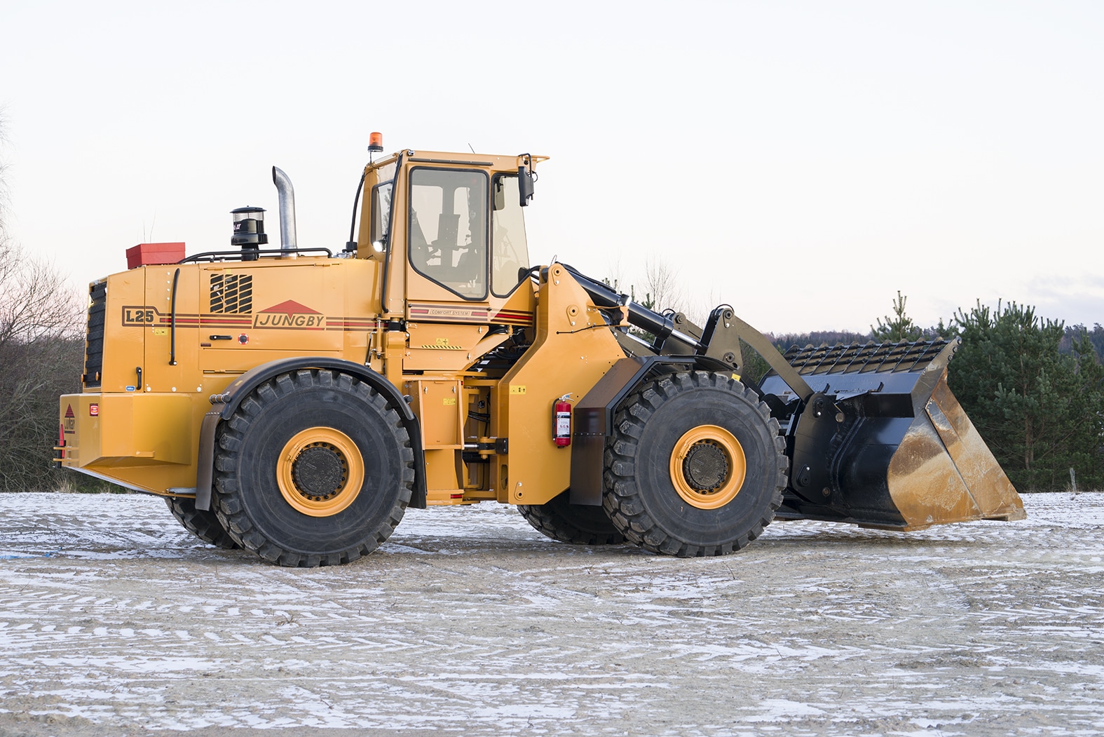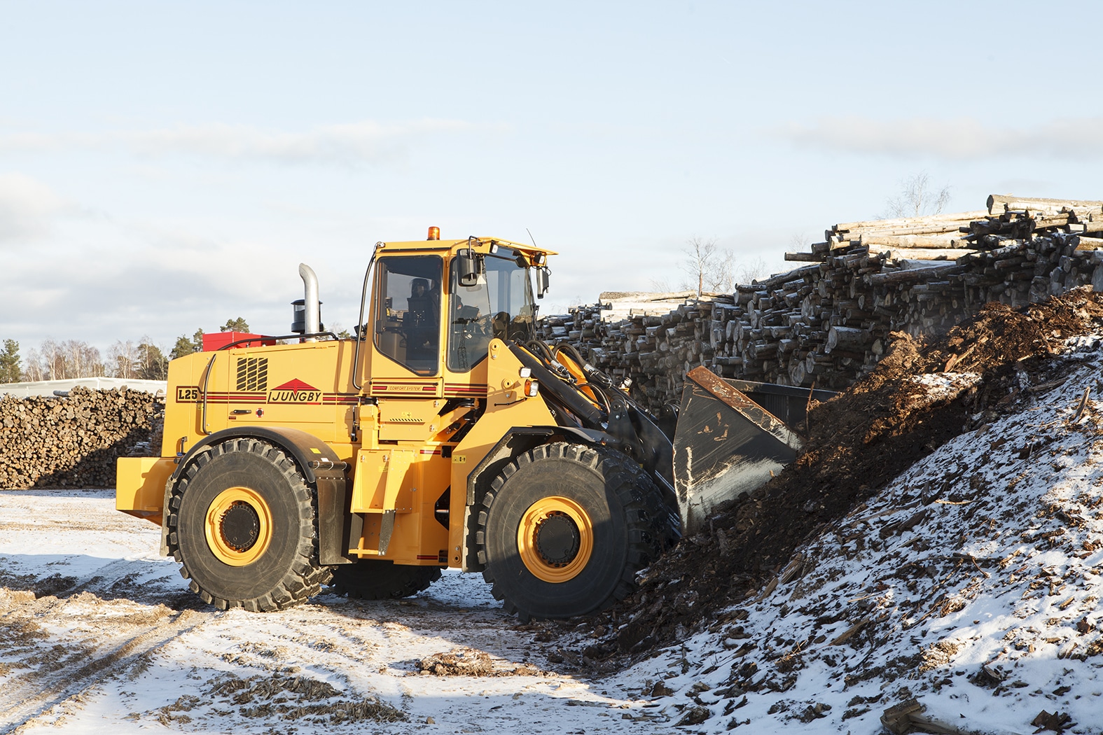 Ljungby L25 er populær for flishåndtering, der den kraftfulle motoren kommer til sin fulle rett. Den høye tipplasten er også til stor nytte ved tung grushåndtering.