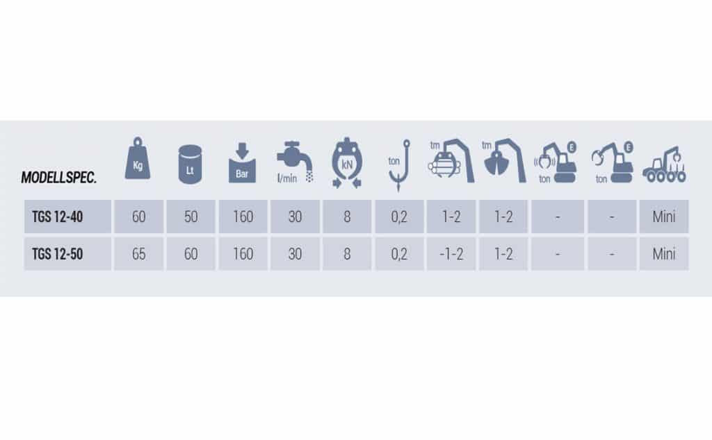 Lav vekt og god fyllingsgrad gjør TGS til det optimale verktøy for ATV- lastebiler, lassbærere og små kraner.