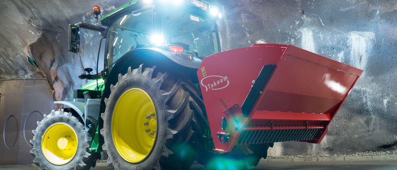 Selvlastende strømaskin med hydraulisk drift, bygget etter skuffeprinsippet.