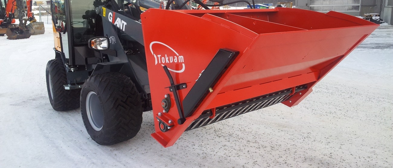 Selvlastende strømaskin med hydraulisk drift, bygget etter skuffeprinsippet. Passer perfekt til strøjobbing med strøgrus (2-8mm) og salt (ikke vakumsalt) hvor fast arbeidsbredde er tilstrekkelig. Kan benyttes på de fleste bæremaskiner i 3-pkt feste eller i laster. SMA er tilpasset en rekke forskjellige strømasser, inkludert singel og salt. Mengde strømasse bestemmes av hastighet på utmatertrommel.
