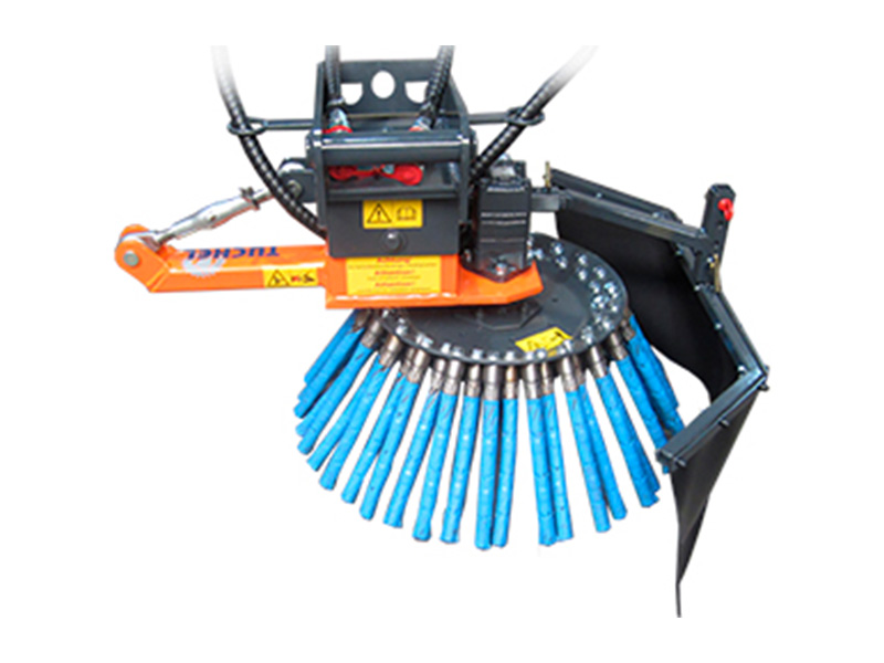 Den nye hydraulisk drevne ugressbørsten for hjullastere, traktorer, små kommunale kjøretøy og gravemaskiner lar deg fjerne alle slags ugress, veldig enkelt og uanstrengt, og fri for kjemikalier. Skivebørsten har en diameter på 750 mm og er utstyrt med flate trådbunter, slik at selv gjenstridig skitt ikke lenger er til hinder.For å sikre fjerning også i kantområder er ugressbørsten utstyrt med en mekanisk sideforskyvning.Ved å justere tilt vinkelen manuelt kan du oppnå høyest mulig skrapeeffekt. En del av basisutstyret er også en justerbar gummibeskyttelsesklut som hindrer at steiner og rusk flyr ukontrollert rundt. Hver maskin kan konfigureres individuelt i henhold til dine krav.