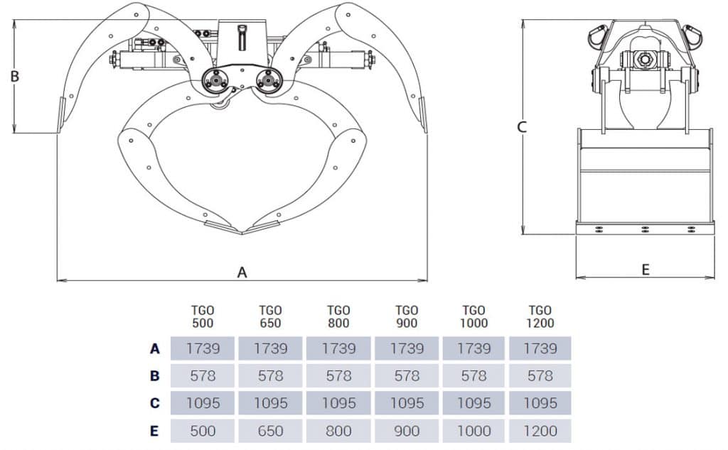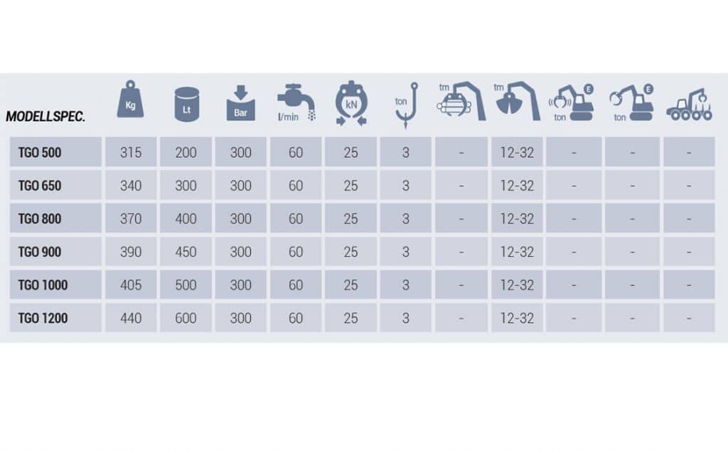 Vår åpne gripeskuff med valgfrie sideplater kan med all rett kalles ett universalverktøy! Den velprøvde, ekstremt robuste konstruksjonen med gjennomgående bolter i opplagringen gjør TGO meget holdbar og vridningsstiv.