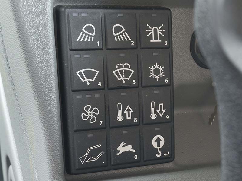 Det ergonomisk utformede førerhuset gir føreren et usedvanlig behagelig miljø som muliggjør en høy grad av produktivitet. Fra det funksjonelt arrangerte, klart strukturerte digitale displayet og sjenerøst dimensjonerte oppbevaringsrom til Soft-Touch interiør eller valgfri Klimatronik – er én ting klart: Arbeidsplassen er designet for operatøren.