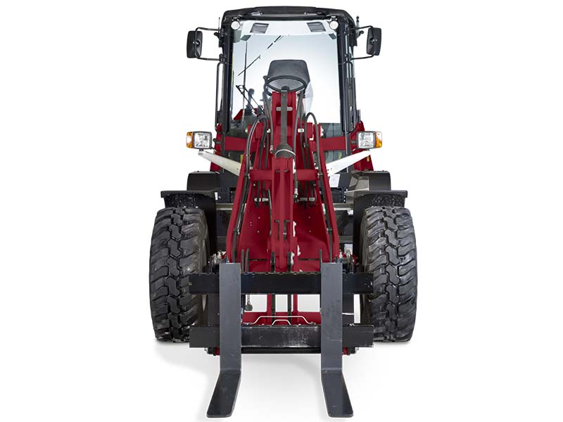 For bedre pålitelighet, for bedre stabilitet. Hjulene fremover og bakover følger samme vei. Ingen skader på gress eller fortau. Kort sving radius og optimal plassering av pallegafler. Mindre slitasje på dekk. Forbedret førerkomfort, økt maskin stabilitet, lengre levetid. Maskinens stabilitet er optimalisert ved bruk av skuffe og gafler.