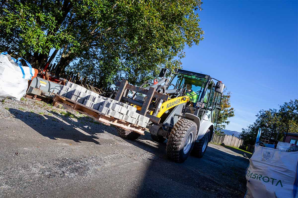 – I dag har vi fire Kramer-hjullastere. Erfaringa vår har vært veldig god, Kramer er rett og slett kvalitet, fortsetter lederen.